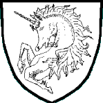 This is a change from her current arms of Or a demi unicorn rampant to sinister sable, crined argent, registered on the 17th October 1993. She submitted this particular device in May 1992 but it was in conflict with the arms of Von Berwang, Sable a demi-unicorn rampant or; these arms are no longer considered significant enough to protect any more under the new rules. She requests her current device become her badge.