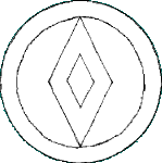 This badge submission is not registerable as blazoned because it is not legal to have an ordinary (such as a bordure, fess or chevron) which is terminated by the edge of the field in fieldless badge. Fortunately what was drawn on the submission forms could be reblazoned as (Fieldless) A mascle within and conjoined to an annulet in chief and base argent. This is however unfortunately in conflict with the device of Perigrine Mellyrn of the Last Mountain, to wit:Azure a mascle with in an annulet argent, there being only one difference for the field.
